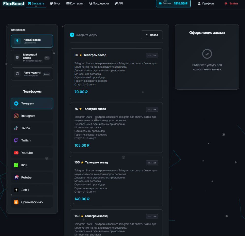 FlexBoost - это платформа для SMM-продвижения, предлагающая услуги по накрутке подписчиков, лайков, просмотров и комментариев в популярных социальных сетях, таких как Instagram, YouTube, Telegram, Twitch, Kick и RuTube. Платформа обеспечивает быстрый запуск, гарантию качества и полную автоматизацию процесса, что делает ее подходящей как для личных блогов, так и для бизнес-аккаунтов.
